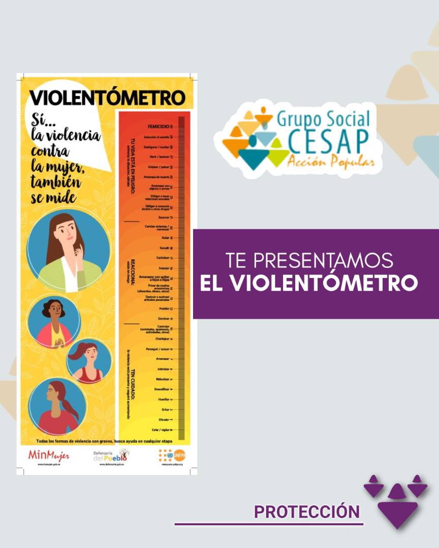 El Violentómetro, una herramienta didáctica y gráfica, originalmente desarrollada por el Instituto Politécnico Nacional de México y promovida globalmente por agencias como el UNFPA de la ONU, se ha convertido en un recurso esencial para la prevención de la violencia en pareja, y es parte del componente de protección de las mujeres de nuestros proyectos
