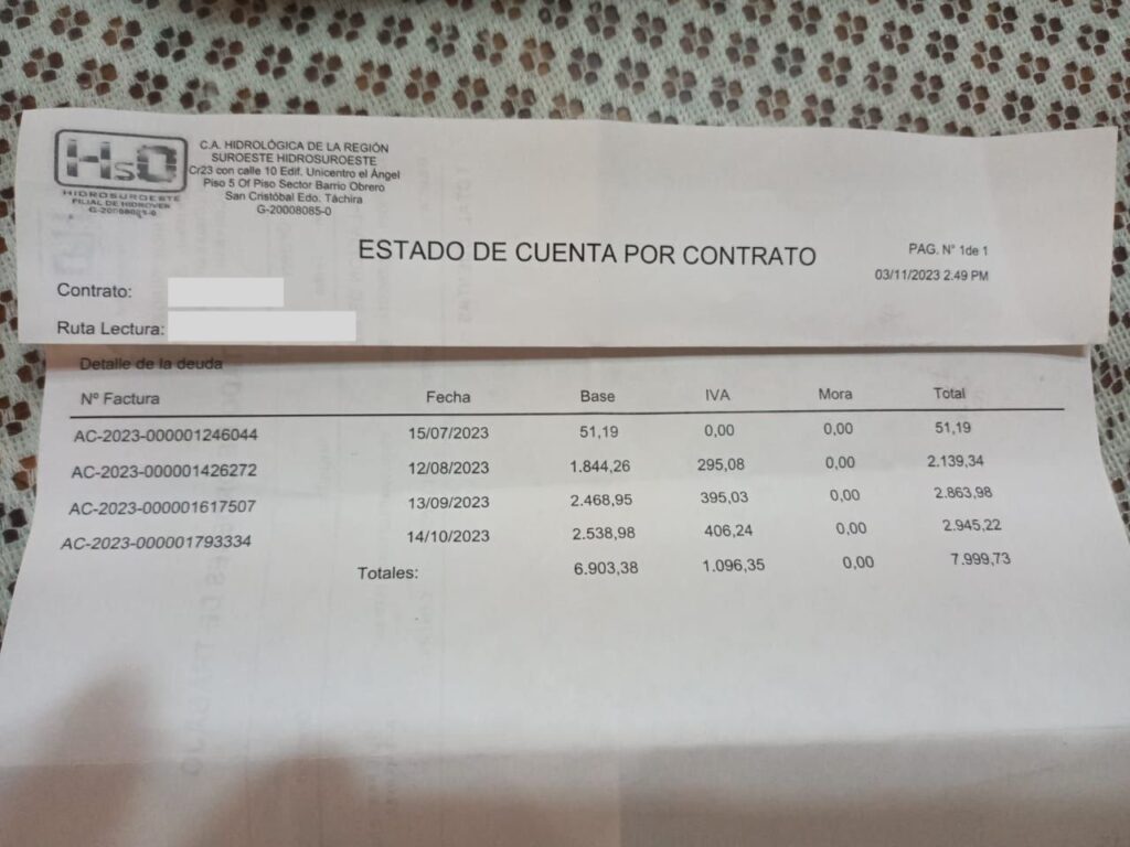 FACTURA DE AGUA EN SAN CRISTÓBAL VIENE CON UN Servicio deficiente